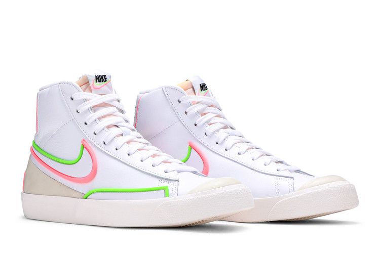 The Nike Blazer 77 Infinite Watermelon W features a high-top silhouette in women's sizing with a white leather upper accented by electric green and sunset pulse details. The design includes...