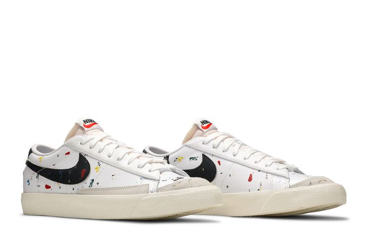 The Nike Blazer Low 77 Paint Splatter has a low-cut silhouette with a leather and suede upper. It features a white and black colorway with Sail accents, a lace-up closure,...