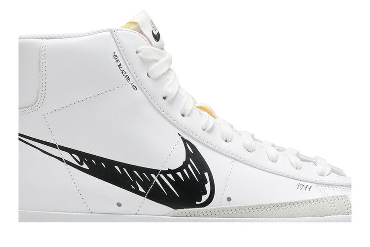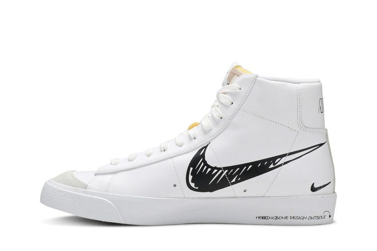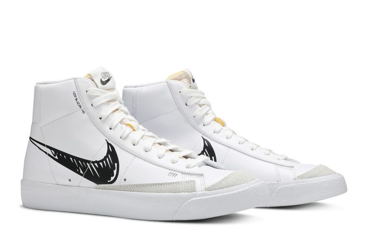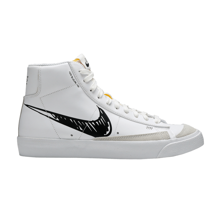 The Nike Blazer Mid 77 Sketch White Black features white leather and suede uppers, with smooth leather covering most of the construction. The Swoosh branding has an unfinished, printed-on look,...