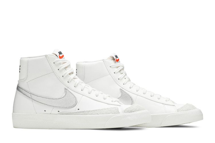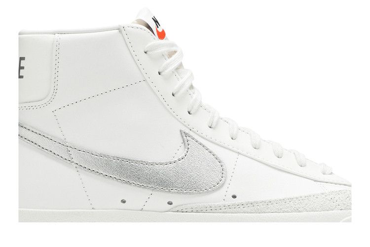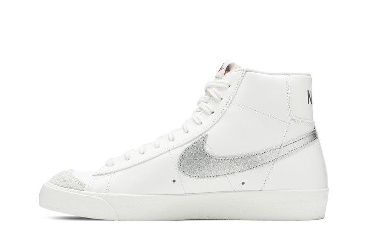 The Nike Blazer Mid 77 Summit White Silver (Women's) features a Summit White/Metallic Silver leather upper with breathable air holes and tonal suede overlays. A metallic silver Swoosh accents the...
