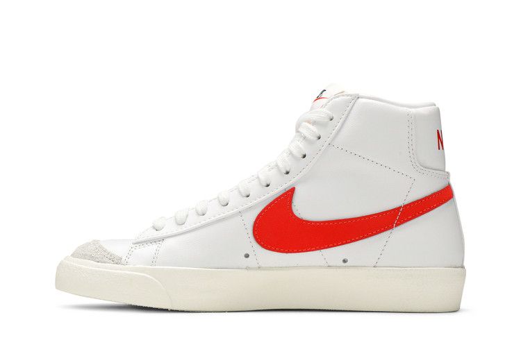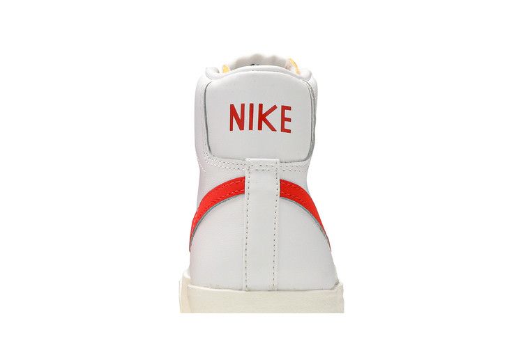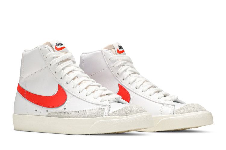 The Nike Blazer Mid 77 Vintage Habanero Red (Women's) features a premium leather and suede upper with sail overlays on the toes and sides. It includes a padded collar for ankle support, a cushioned insole, and a durable rubber outsole for traction. The mid-top design ensures a snug fit and flexible movement.