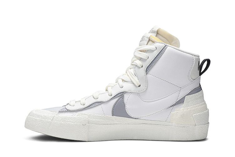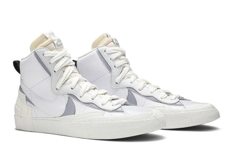 The Sacai Nike Blazer Mid White Grey debuted on the Fall/Winter 2019 runway, marking the second collaboration between Nike and Sacai. Designed by Chitose Abe, the shoe features doubled mudguards, tongues, laces, heels, and Swooshes for a layered effect. It uses a summit white, wolf grey, and black color scheme with premium materials. Released on October 2019, the Sacai Nike Blazer Mid White Grey is available now at Side Kicks.