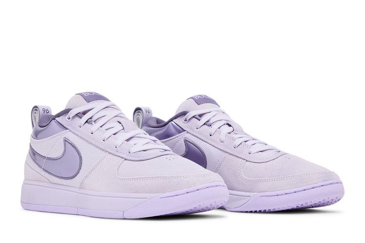 The Nike Book 1 Lilac Bloom features an all-over pastel-purple colorway with a mixed-material upper of suede, leather, and twill-like fabric. The pearlescent Swoosh and collar contrast in Daybreak, matching...