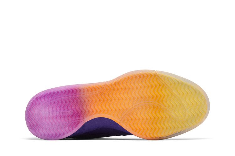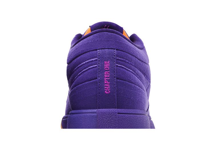 The Nike Book 1 Sunset features a durable canvas-style textile upper in Court Purple, inspired by sunset hues. The design includes purple embroidered Swoosh logos, Total Orange tongue branding, and "Chapter One" heel text in pink. A Court Purple midsole houses an Air Zoom heel unit, while the outsole blends pink, orange, and yellow for a cohesive look. Released on November 15, 2024, the Nike Book 1 Sunset is available now at Side Kicks.