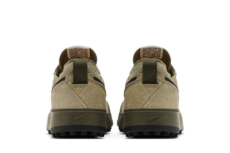 The Nike C1TY Surplus features a suede and mesh upper in a Light Army color palette, with a Black Swoosh on the sides. The Cargo Khaki midsole pairs with a Black Waffle outsole, while University Gold accents appear on the tongue and heel pull tab. Designed for urban environments, it balances protection and breathability.