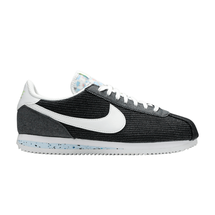 The Nike Classic Cortez Recycled Canvas features a dark gray and white colorway with a low-top silhouette. Constructed from recycled fabrics, it includes a foam midsole and reinforced ankle support...