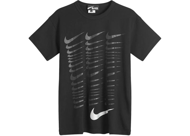 The Nike Comme des Garcons Black Tonal Swoosh Print T-shirt Black is now available at Side Kicks!