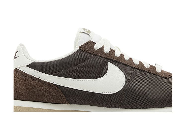 The Nike Cortez Baroque Brown (Women's) features a Baroque Brown, Sail, and khaki colorway. It has a soft foam midsole in Sail with a khaki wedge for cushioning. The rubber...