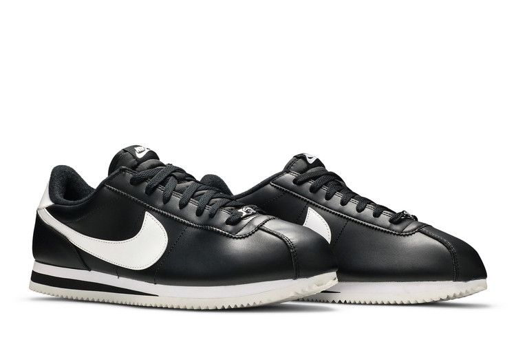 The Nike Cortez Basic Nylon Black White Metallic Silver features a leather and synthetic leather upper with canvas eye stays and heel wrap. The black, white, and metallic silver colorway...