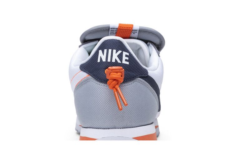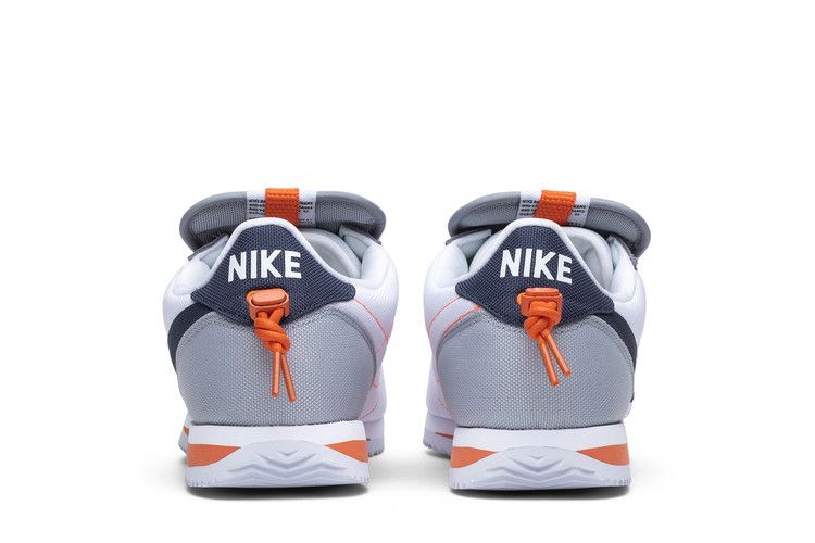 The Nike Cortez Basic Slip Kendrick Lamar White features an all-white upper with grey accents, a blue Nike Swoosh, and a white midsole with orange detailing. The design draws inspiration...