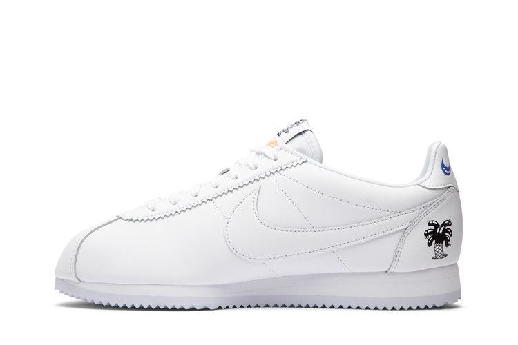 The Nike Cortez Flyleather Steve Harrington Earth Day (2019) features a white upper with blue and green accents, dual white and black Nike Swoosh branding, a white midsole, and a white outsole. Note: The dyed paper in the box may transfer marks to the included white laces. Released on April 2019, the Nike Cortez Flyleather Steve Harrington Earth Day (2019) is available now at Side Kicks.