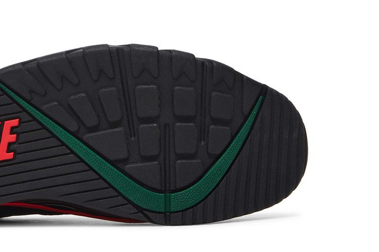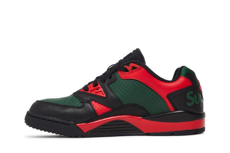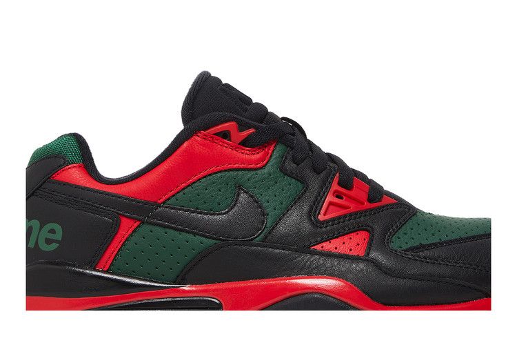 The Nike Air Cross Trainer Low Supreme Black Green Red has a premium perforated green leather upper with smooth black and red leather overlays, plus a black Swoosh. The tongue...