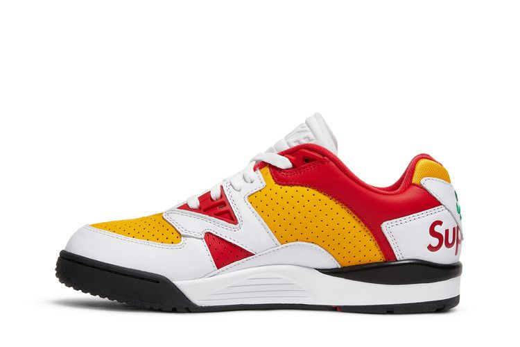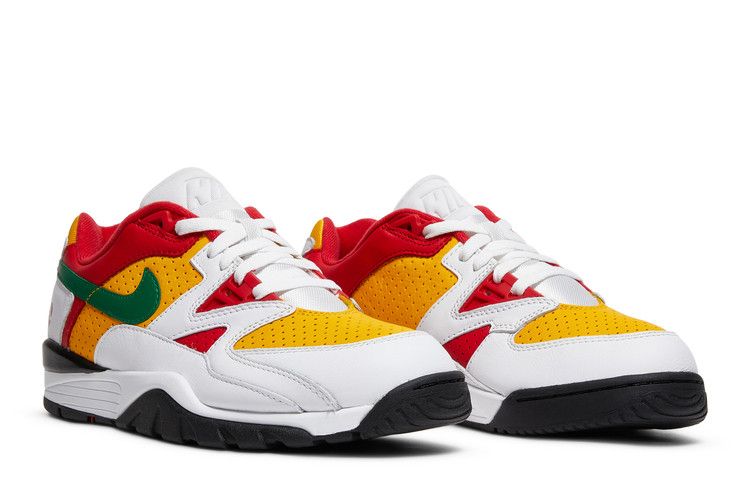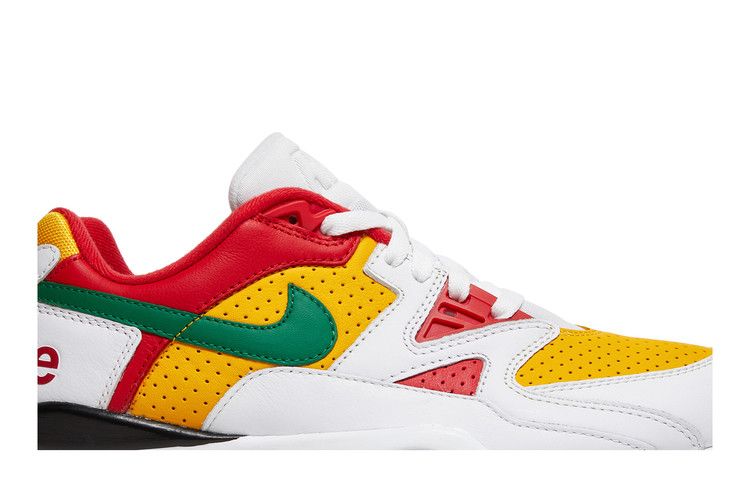 The Nike Air Cross Trainer Low Supreme White Yellow Red has a premium perforated yellow leather upper with smooth white and red leather overlays, plus a green Swoosh. The tongue...