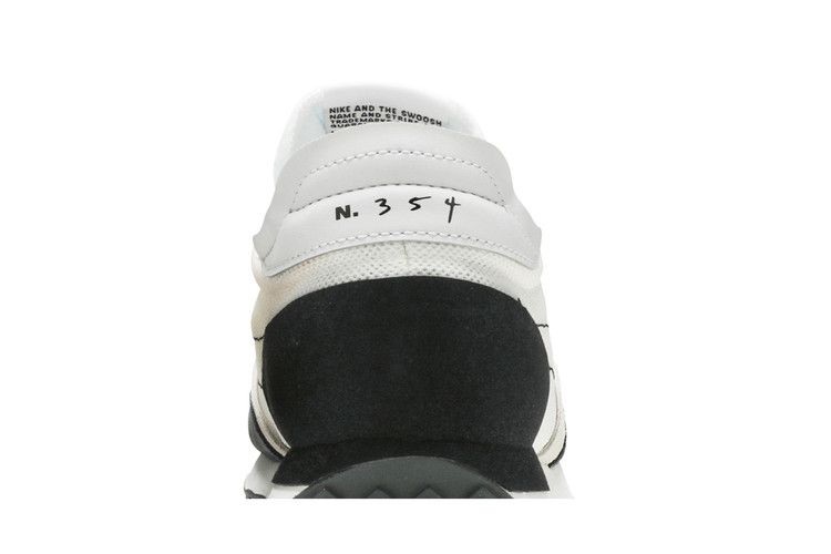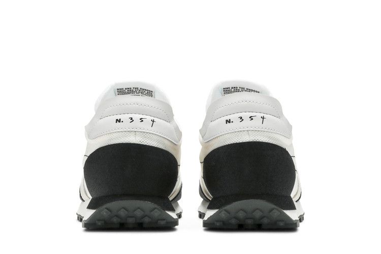 The Nike Daybreak Type Summit White Light Orewood Brown features a low-top design with a Summit White, black, and Light Orewood Brown color scheme. The upper combines mesh, suede, and leather for breathability and durability. Nike Swoosh branding appears on the sides, while "N. 354" text is printed on the heel. A traditional lacing system ensures an adjustable fit, and the foam midsole provides cushioning. The rubber waffle outsole delivers traction and stability.
