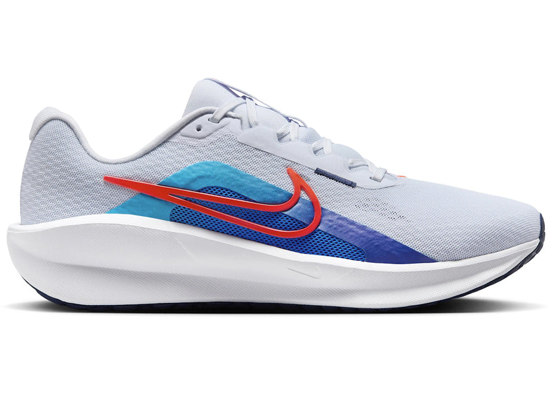 The Nike Downshifter 13 Football Grey Deep Night Blue Lightning Bright Crimson is now available at Side Kicks!
