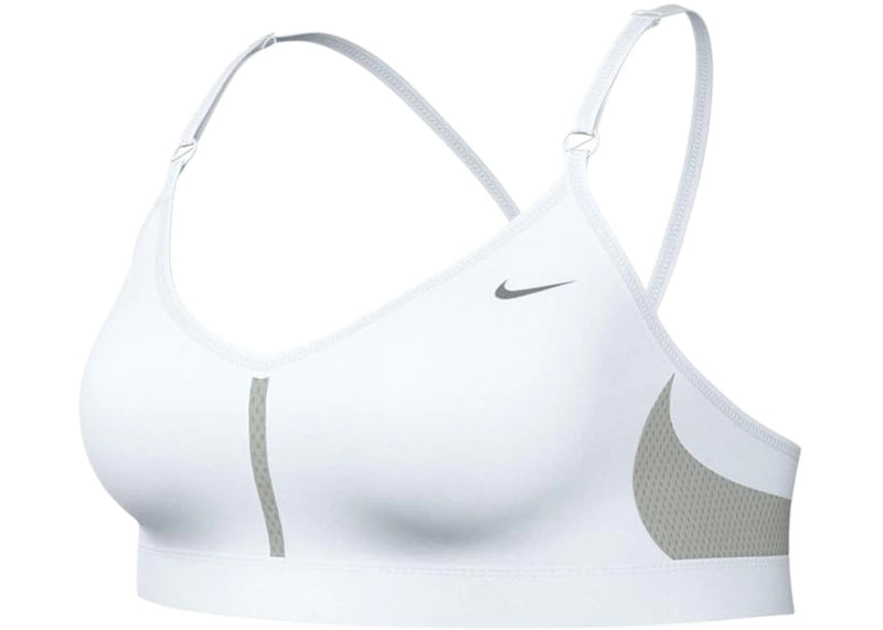 The Nike Dri-FIT Indy Light Support V-Neck Sports Bra (Plus Size) White/Grey Fog/Particle Grey is now available at Side Kicks!