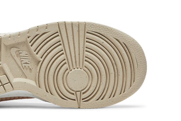 The Nike Dunk High Next Nature Pink Oxford features a white and tonal pink quilted upper with a soft fleece interior for warmth. The design draws inspiration from down comforters, combining style with functionality.