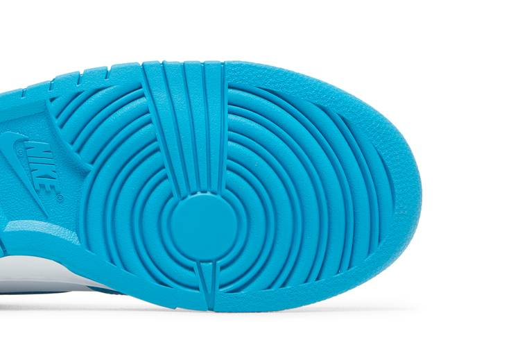 The Nike Dunk High ‘Laser Blue’ features a leather upper with a white base and pastel blue overlays, reminiscent of the 1985 ‘Be True to Your’ series. The shoe includes a Nike logo on the tongue tag and sockliner, along with a blue rubber outsole with a traction pattern inspired by the Air Jordan 1.