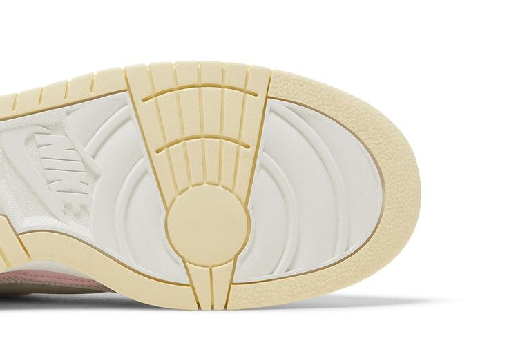 The Nike Dunk High Retro PRM Cracked Leather Swoosh features a Summit White, White, Phantom, and Pink Oxford colorway with gold accents. The upper combines smooth and tumbled leather for...