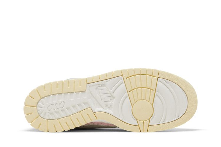 The Nike Dunk High Retro PRM Cracked Leather Swoosh features a Summit White, White, Phantom, and Pink Oxford colorway with gold accents. The upper combines smooth and tumbled leather for...