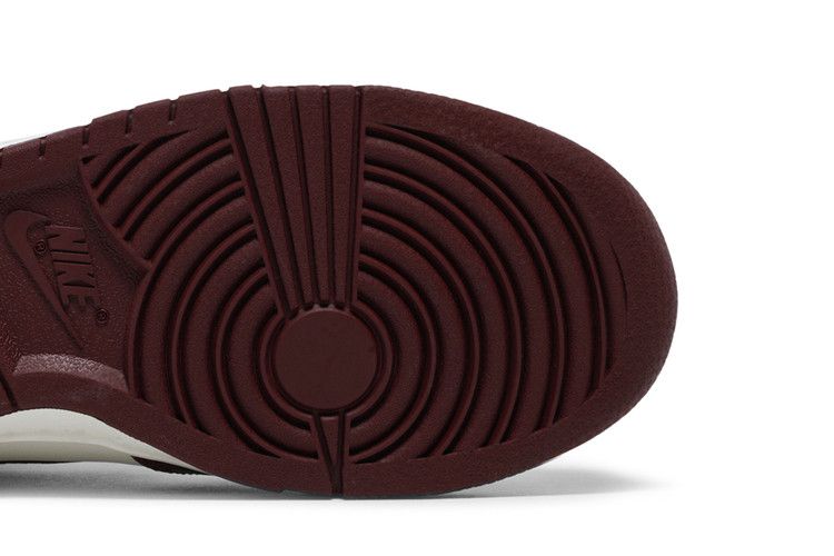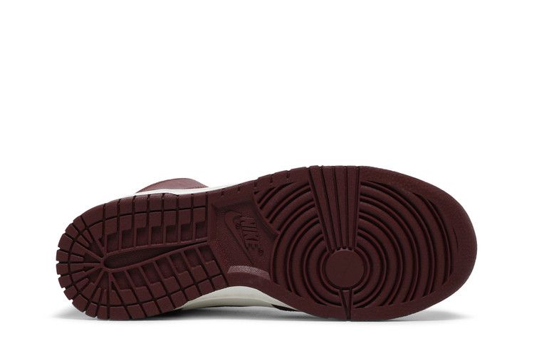 The Nike Dunk High Sail Team Red W features a sail, team red, and pale ivory color scheme. It has a cream leather base with light burgundy overlays, printed insoles,...
