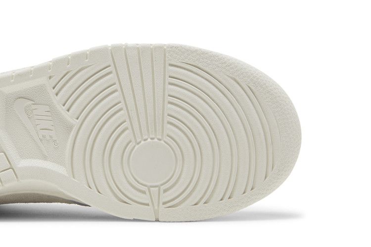 The Nike Dunk High SE Clouds Celestine Blue (Women's) features a hairy suede upper in sail with white and blue suede overlays, matching the cloud-inspired theme. Perforations on the toe box enhance breathability, while flat white laces and a padded tongue ensure a secure fit. The white foam midsole and rubber outsole provide traction with concentric circles, grooves, and stars.