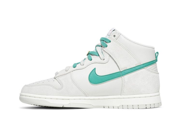 The Nike Dunk High SE First Use Sail GS features a premium leather upper in Sail color with diamond print texture. It has a non-marking rubber outsole with herringbone traction...