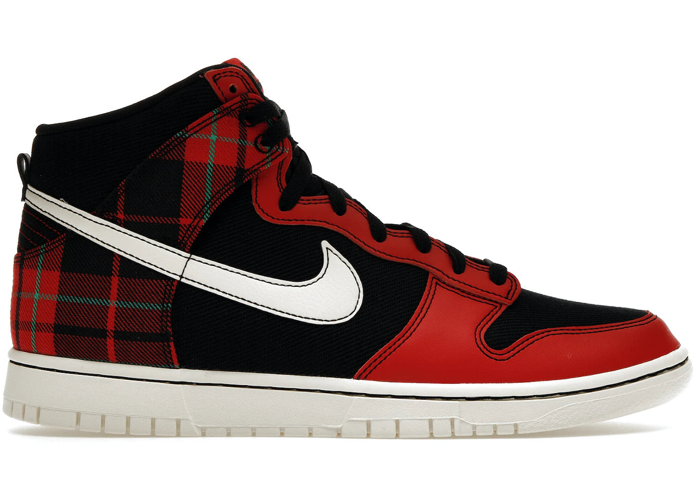Released on January 18, 2023, the Nike Dunk High SE Tartan Plaid Black University Red is available now at Side Kicks.