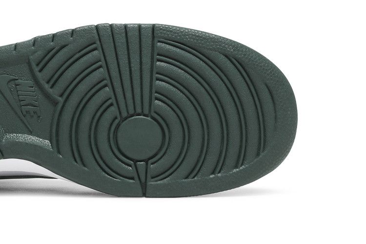 The Nike Dunk High Spartan Green features a full-grain leather upper in white and Spartan Green, with perforations for breathability. The design includes the original "Wings" detail near the ankle for adjustable styling. Inspired by Michigan State Spartans, this retro basketball silhouette maintains its classic look. Released on September 2020, the Nike Dunk High Spartan Green is available now at Side Kicks.