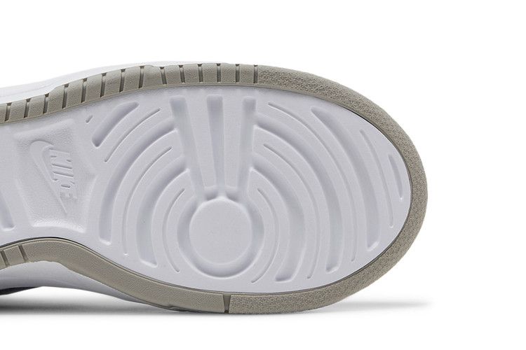 The Nike Dunk High Rebel Iron Purple (W) features a Sail leather upper with layered grey and purple overlays on the collar and toe box. It includes an embroidered mini...