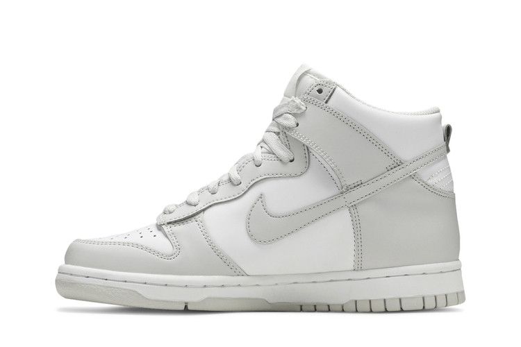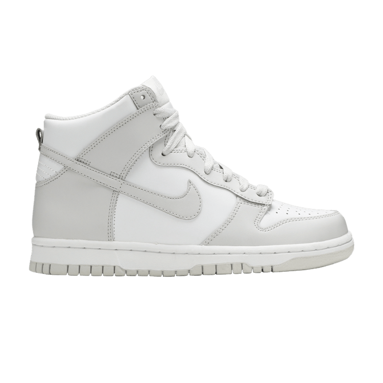 The Nike Dunk High Vast Grey GS features a leather upper with grey overlays on a white base. It includes a low-profile midsole and grey rubber outsole for traction. The...