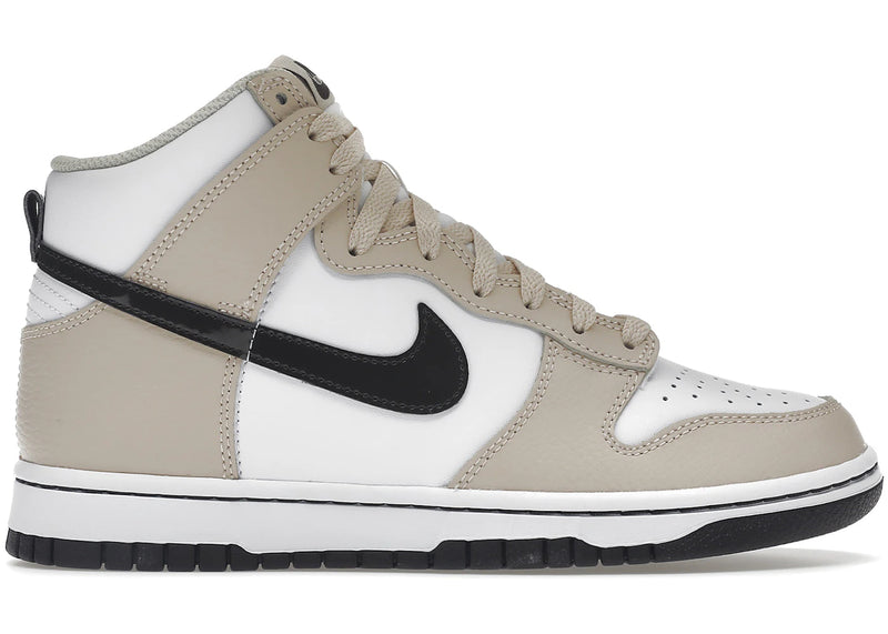The Nike Dunk High White Sanddrift Brown (Women's) features a smooth white leather upper with perforated toe box for ventilation. Tan tumbled leather overlays contrast the base, while brown patent...