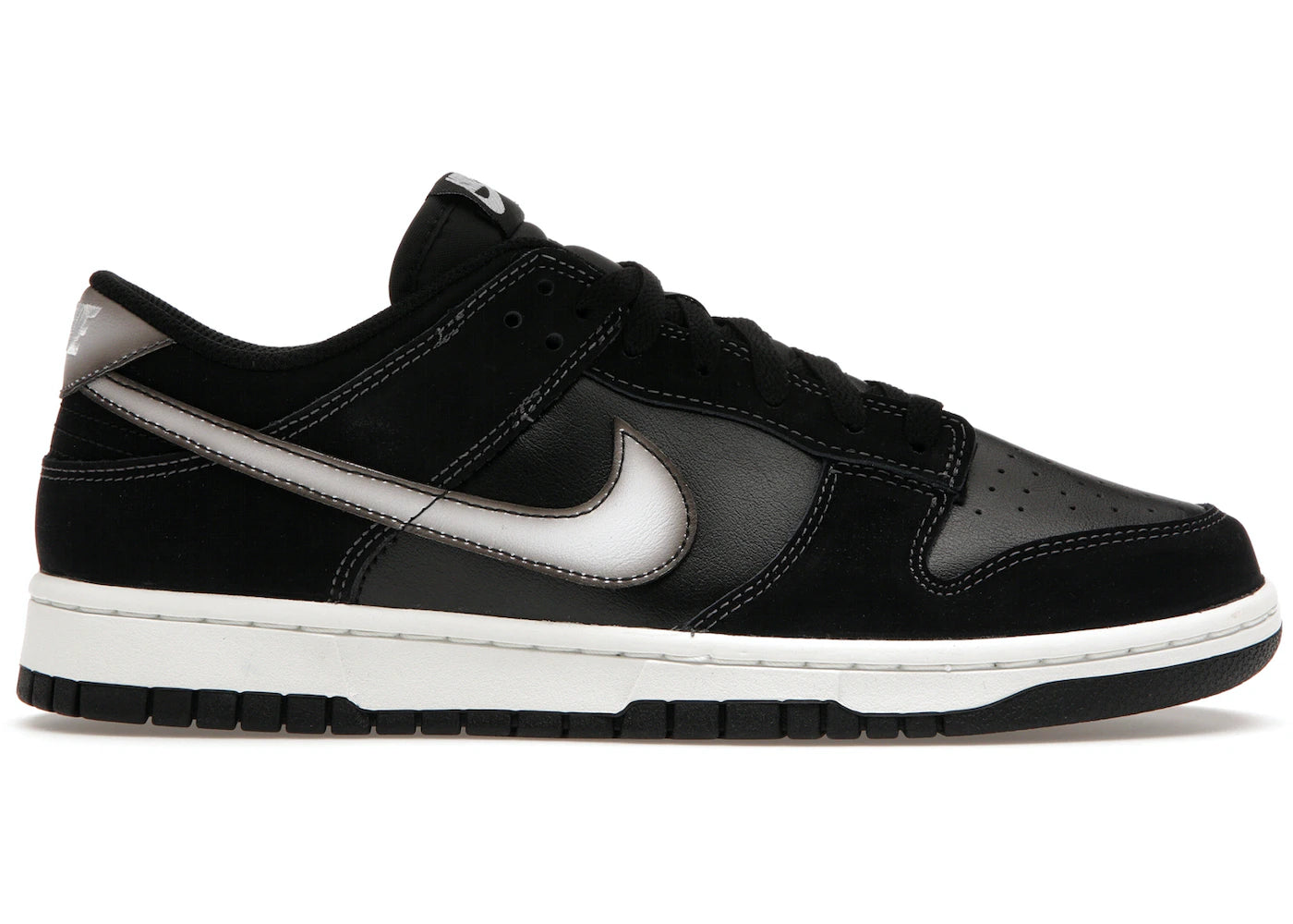 The Nike Dunk Low Airbrush Swoosh Black features a black leather upper with suede overlays. It includes a white rubber midsole, black rubber outsole, and Nike Basketball branding on the...