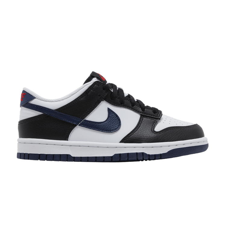 The Nike Dunk Low Black White Midnight Navy (GS) is now available at Side Kicks!