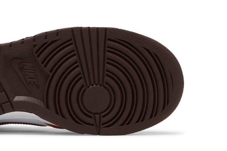 The women's Nike Dunk Low Bronze Eclipse (W) has a white leather upper with Mesa Orange overlays and Bronze Eclipse Swooshes. Matching soles and woven tongue labels complete the design....