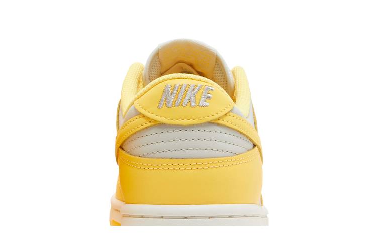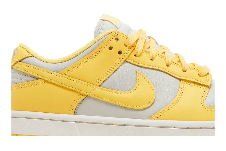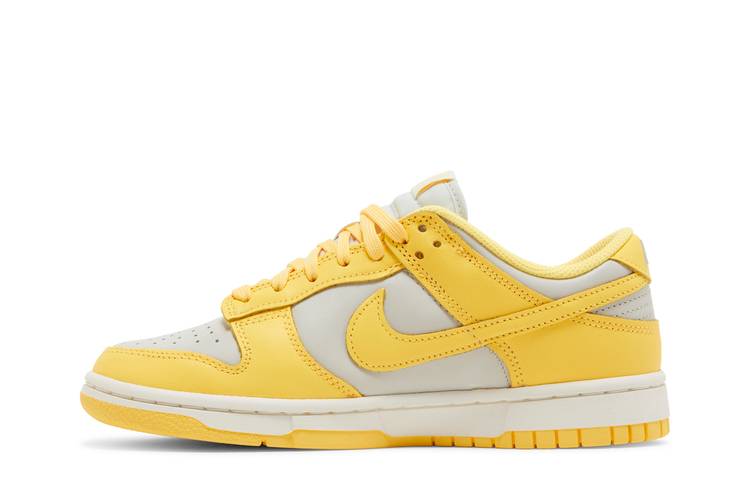 The Nike Dunk Low Women’s ‘Citron Pulse’ features a two-tone color scheme reminiscent of the 1985 'Be True to Your School' series. Its all-leather upper includes a Light Bone base with yellow overlays and a matching Swoosh. The design boasts a padded low-cut collar, perforated toe box for breathability, and a white midsole with a yellow rubber outsole for support. Specifically crafted in women’s sizing, this shoe offers a cushioned insole for comfort, support, and impact reduction, along with a durable rubber outsole for traction. The shoe's secure lace-up closure ensures a personalized fit and showcases vibrant Light Bone, Citron Pulse, and Sail accents.