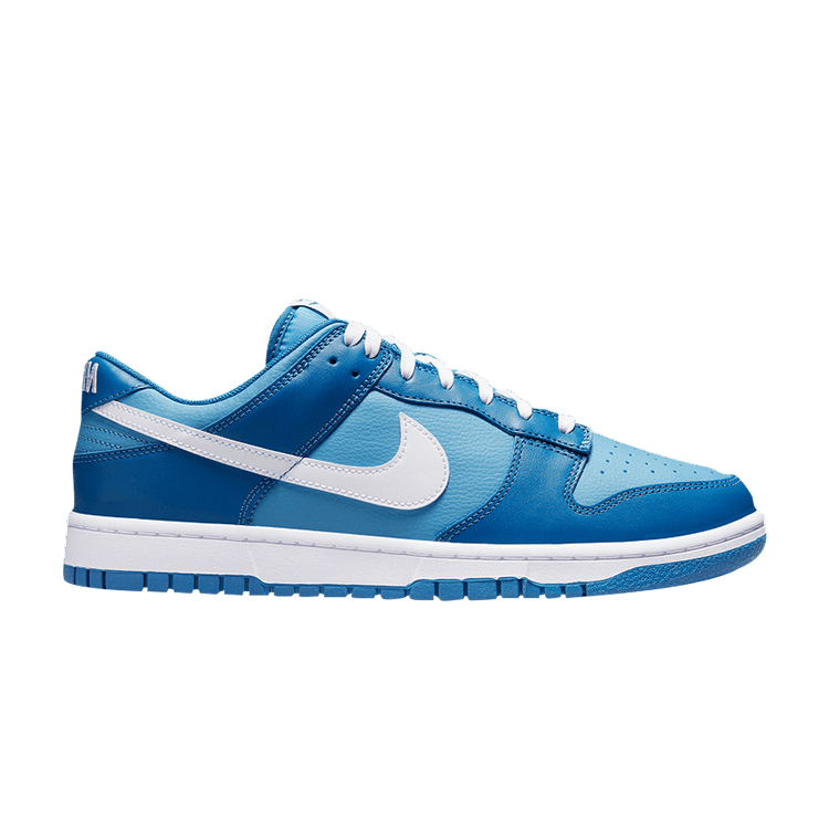 The Nike Dunk Low Dark Marina Blue (Gradeschool) features a bright blue sole paired with a white midsole. It combines smooth and pebbled leather in a baby blue base with darker blue accents. The white Swoosh contrasts the baby blue tongue, while white laces and a perforated toe box complete the design. Released on June 2022, the Nike Dunk Low Dark Marina Blue (Gradeschool) is available now at Side Kicks.