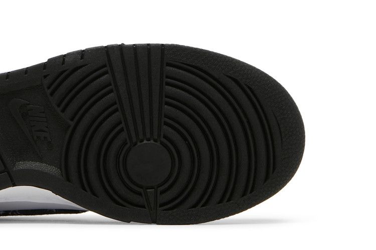 The Nike Dunk Low Black Paisley (W) features a white leather upper with black leather overlays. Black accents appear on the nylon tongue, laces, insole, and rubber outsole. The Swooshes...