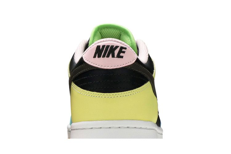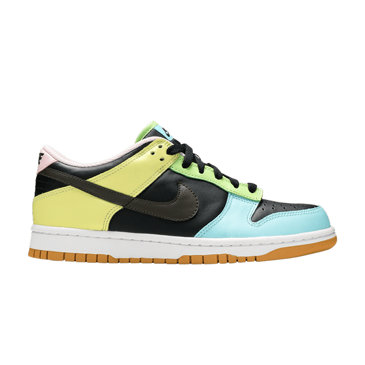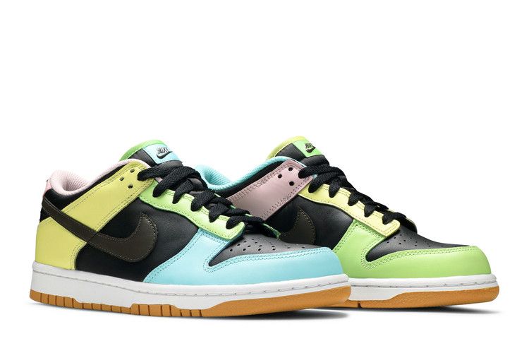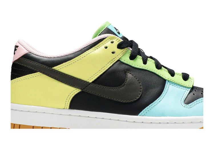 The Nike Dunk Low Free 99 Black GS features a supple leather upper with mismatched powder blue, lime green, and pink accents. It includes a black Swoosh, nylon tongue, and...