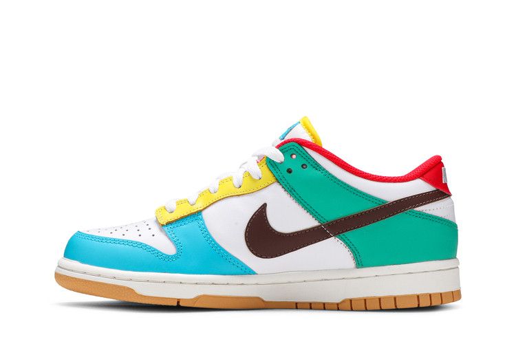 The Nike Dunk Low Free 99 Black GS features a supple leather upper with mismatched powder blue, lime green, and pink accents. It includes a black Swoosh, nylon tongue, and...