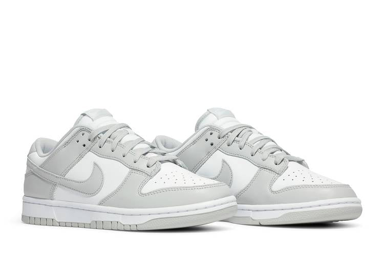The Nike Dunk Low 'Grey Fog' showcases a two-tone colorway with a white leather upper and Grey Fog overlays. This classic silhouette, originally designed for college hoops in 1985, features...