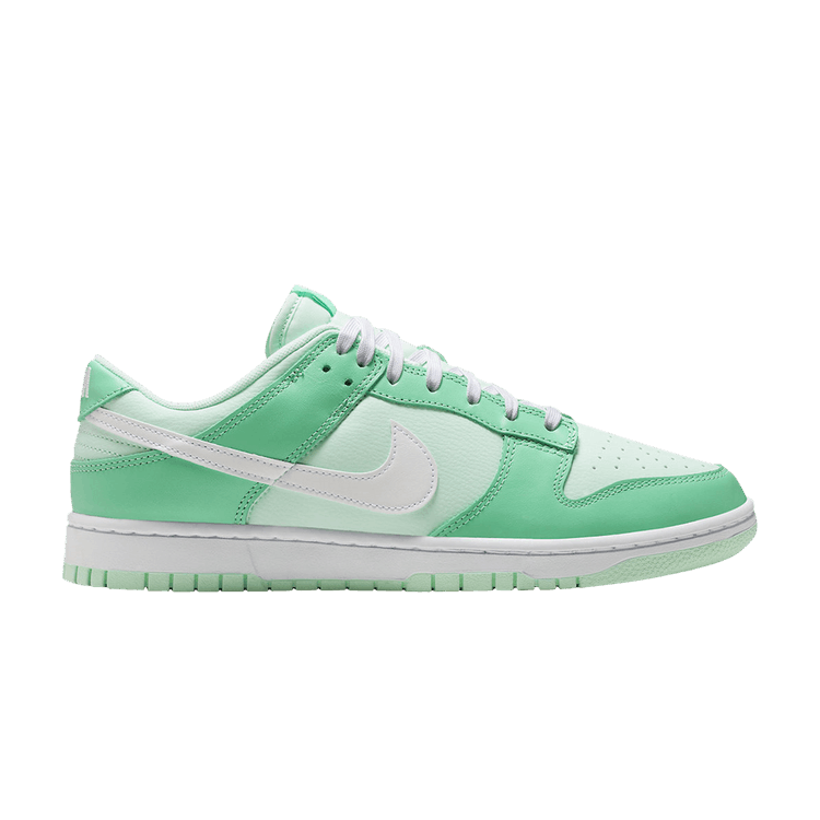 The Nike Dunk Low Light Menta features a durable leather upper with a cushioned midsole for all-day comfort. Its non-slip outsole provides reliable traction on various surfaces. The lateral side showcases an embroidered Swoosh, while the heel tab displays a debossed Nike logo. Perforations on the toe box and tongue enhance breathability. The Light Menta colorway combines mint green and white accents for a clean look. Released on March 19, 2022, the Nike Dunk Low Light Menta is available now at Side Kicks.