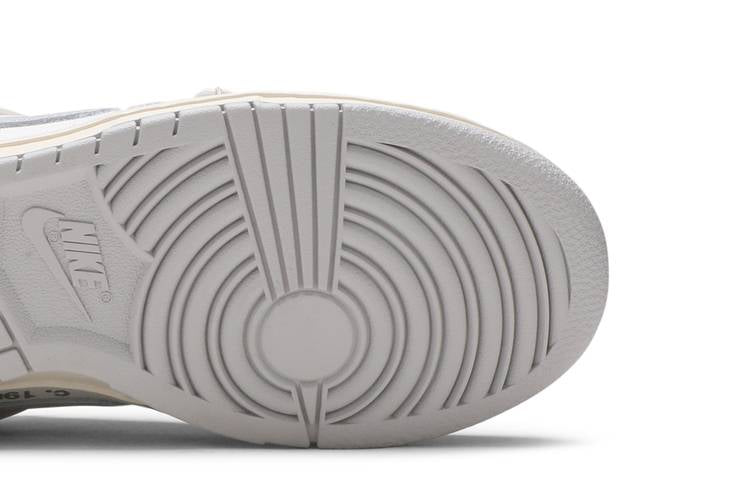 The Nike Dunk Low Off-White Lot 25 features a white leather upper with grey canvas overlays, highlighted by Virgil Abloh's signature design elements such as a plastic zip tie, printed...