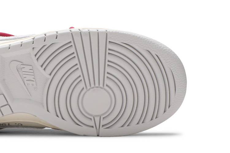 The Nike Dunk Low Off-White Lot 35 is part of the ‘Dear Summer’ collection, a collaboration between Nike and Off-White. This limited edition sneaker features a white leather upper with grey suede overlays, signature Off-White details like a plastic zip tie and printed Helvetica text, and pops of color from the secondary lacing system, zip-tie, tongue, and Swoosh tab. Limited to fifty pairs, each shoe is numbered with a ‘35 of 50’ badge. The design inspiration for this Dunk Low comes from Virgil Abloh’s unique aesthetic and attention to detail.