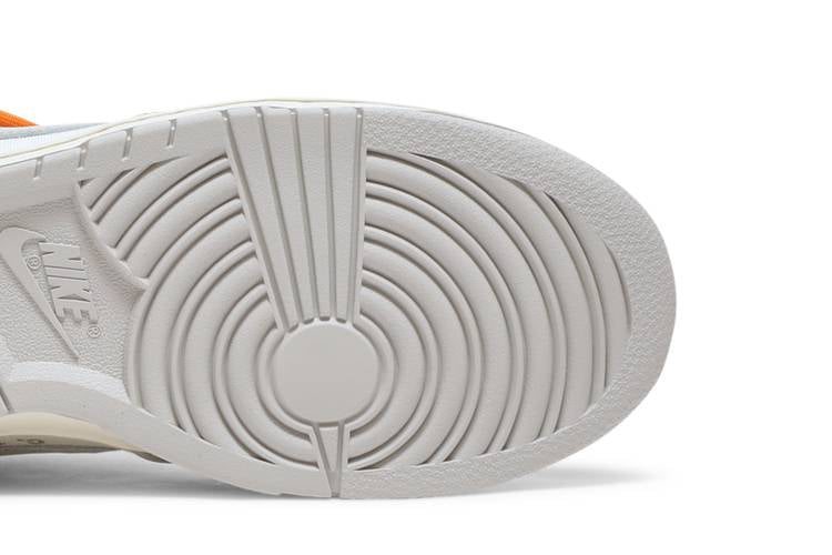 The Nike Dunk Low Off-White Lot 44 is a collaboration between Nike and Virgil Abloh, featuring a white leather upper with grey canvas overlays and signature Off-White details such as a zip tie and Helvetica text. Limited to fifty pairs, the shoe includes contrasting pops of color, an exposed-foam tongue, and a unique rectangular tab on the Swoosh. The Lot 44 Dunk Low Off-White offers cushioning with a foam sole, traction with a rubber outsole, and stability with a herringbone pattern. This deconstructed design showcases a raw and rugged aesthetic, released on August 9th, 2021.