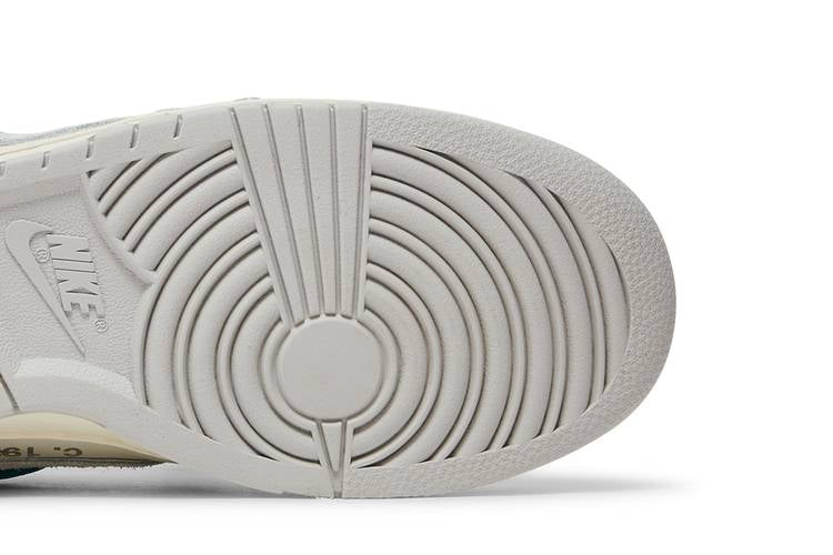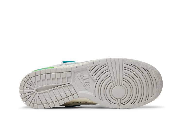 The Nike Dunk Low Off-White Lot 36 is a limited-edition sneaker from the ‘Dear Summer’ collection by Virgil Abloh. Featuring a white leather upper with grey suede overlays, this low-top shoe includes signature Off-White details like a zip tie, printed Helvetica text, and colorful accents on the laces, zip tie, tongue, and Swoosh tab. With only fifty pairs available, each shoe is marked with a unique ’36 of 50’ badge. Made of leather and suede, this modern basketball shoe is a stylish addition to any sneaker collection.