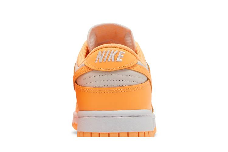 The Nike Dunk Low Peach Cream (Women's) features a two-tone design with a blend of peach cream and white colors. The shoe is constructed with a leather upper, Swoosh logos...