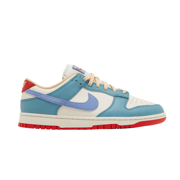 The Nike Dunk Low Premium Denim Turquoise features a leather upper in Pale with Denim Turquoise overlays and a Royal Pulse Swoosh. A light peach sock liner and laces contrast...