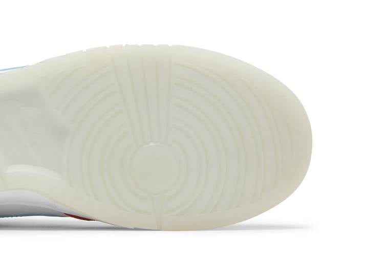 The Nike Dunk Low QS LeBron James Fruity Pebbles pays homage to the popular cereal with a colorful design. The shoe features a white leather upper with scarlet overlays, a powder blue Swoosh, and multicolor laces. The tongue showcases a Fruity Pebbles tag, while LeBron’s LJ logo is on the heel tab. Inside, a Nike-branded sockliner reveals a Fruity Pebble graphic print. The milky translucent rubber outsole offers traction.