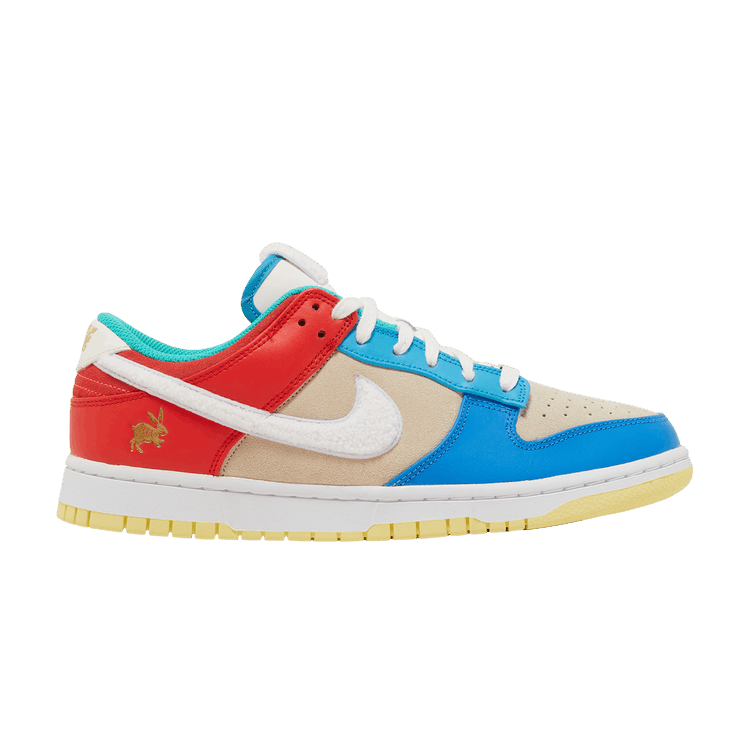 The Nike Dunk Low Retro PRM Year of the Rabbit Blue Orange Cream features a tan suede upper with blue and scarlet leather overlays. Chinese rabbit symbols appear on the...